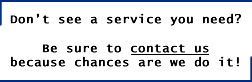 Personal or business web site design including any other additional services you may need; registering your domain name, setting up web hosting, complete e-commerce, SSL encryption, and more. For samples, go to our featured clients page.