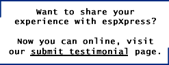 I needed a web site done well and up quickly...and espXpress delivered. I was very impressed with their speedy turn around time - they designed my web site to the required spec in half the time that other companies could offer. They helped me customize my site exactly the way I wanted it. I have enjoyed working with them and would certainly recommend them to other businesses.